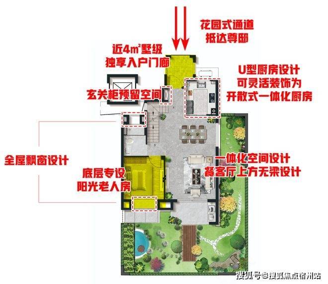 第一、不需要经过门厅及电梯厅的独立入户方式,做到独门独院的感觉,尊享感和仪式感拉满。