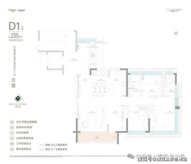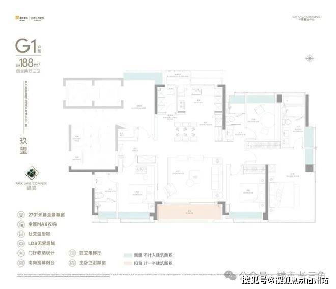 超大尺度与超强采光面,四开间朝南+主卧270°无柱转角飘窗+灵动空间设计,豪宅基因与品质感跃然于眼前,全市改善稀缺品种。