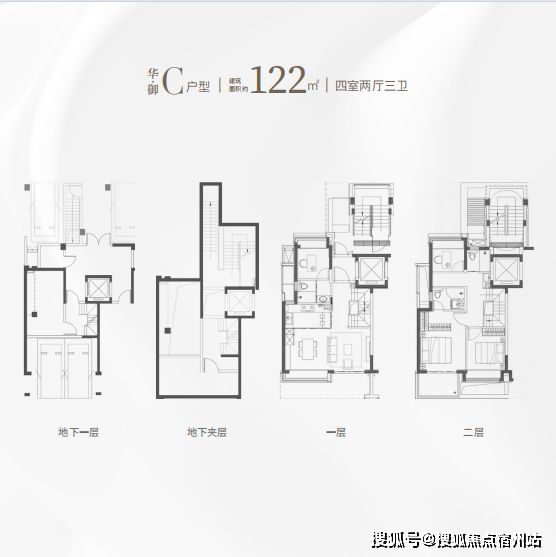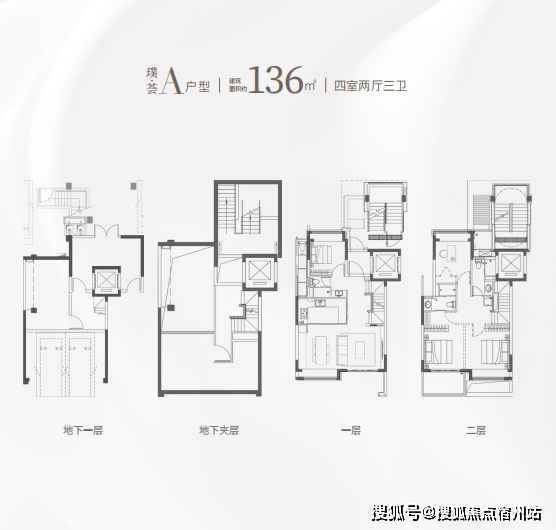 :136㎡上叠四房三卫,适合三代同堂家庭。
