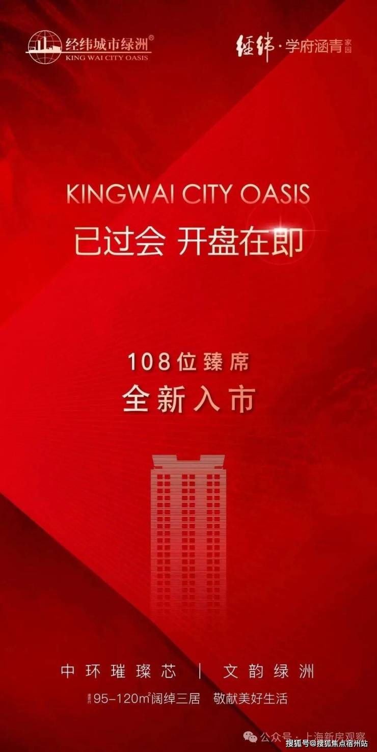 「经纬学府涵青」最新消息:宝山中外环,经纬城市绿洲2期 108套主力建面约95-120㎡3-4房待上市。