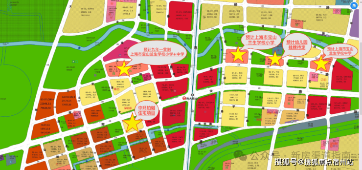 上海市宝山兰生中学为全新的九年一贯制公办学校(包括西校区小学部和东校区中学部,总用地面积约6万平方米、计容建筑面积约7.1万平方米,暂定小学部45个班、中学部58个班),据此看来东北及西北象限均纳入兰生学校。
