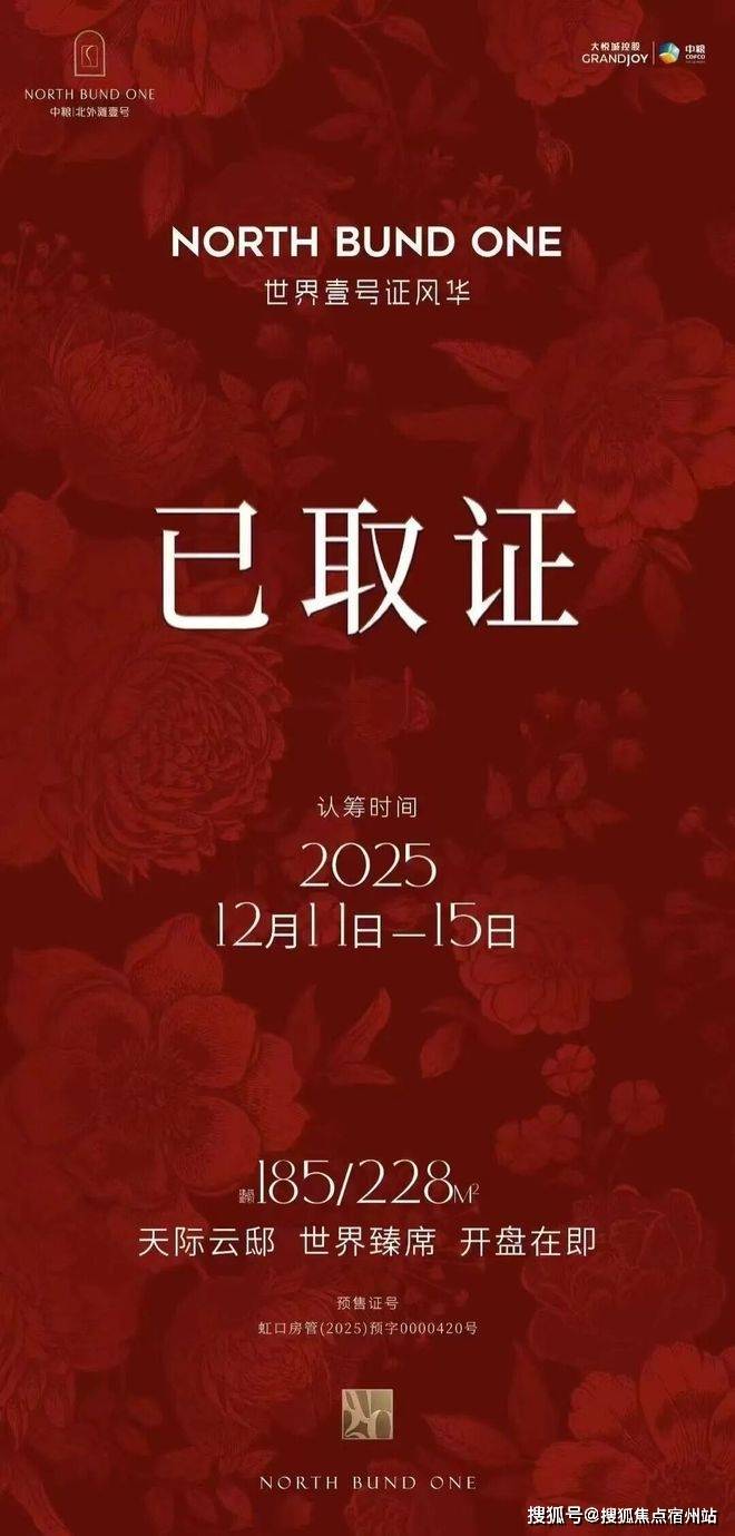 最新消息:虹口内环内北外滩核心区,4号线大连路站直线约300米,中粮北外滩壹号已取证,即将开启认购!认购时间:12月11日-12月15日。项目首开90套建面约184-228㎡天际大宅,均价143868元/㎡!项目样板间已开放!