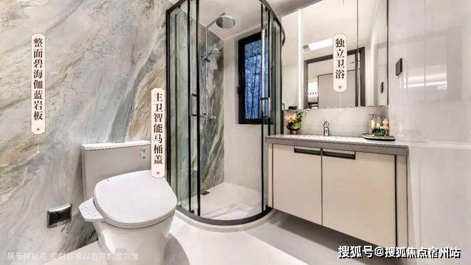 主卧预留衣柜空间,明亮观景飘窗,既能够节省空间,又能提高使用效率。独立卫浴,智能马桶盖,搭配整面碧海伽蓝岩板,色彩高级,✅✅建发联发·青云上售楼处电话:400 - 8824 - 258✅✅且富有艺术感,方寸之间,尽赋日常优雅时光。