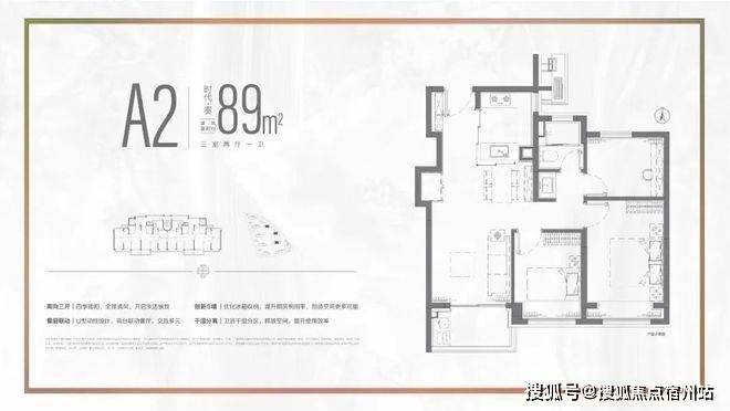 建面约89㎡(3室2厅1卫)