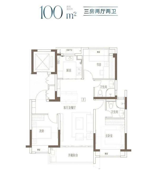 建面约100㎡ 3房2厅2卫▼