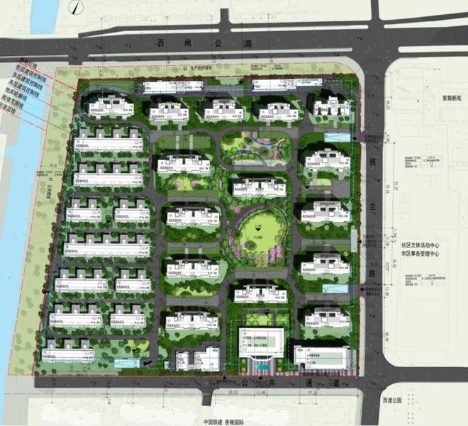 以江南人文精神为源点, 打造两轴一环五进空间,江南礼序归家轴串联启迎盛礼、筑阙会友、归家华堂等5重礼制,尊崇归家;健康运动轴以24小时跑道为社区活力生活环,串联儿童乐园、长者康养、疗愈花园等10大生活场景,营造全龄全时的江南诗意生活