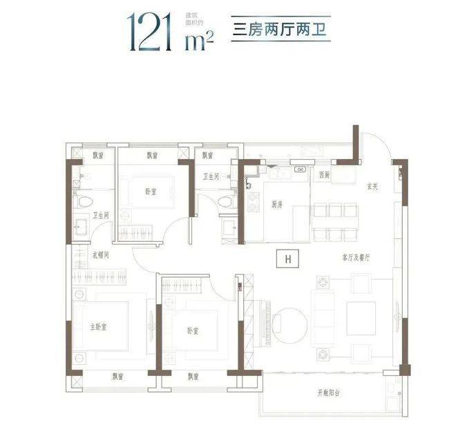 建面约121㎡3房2厅2卫▼