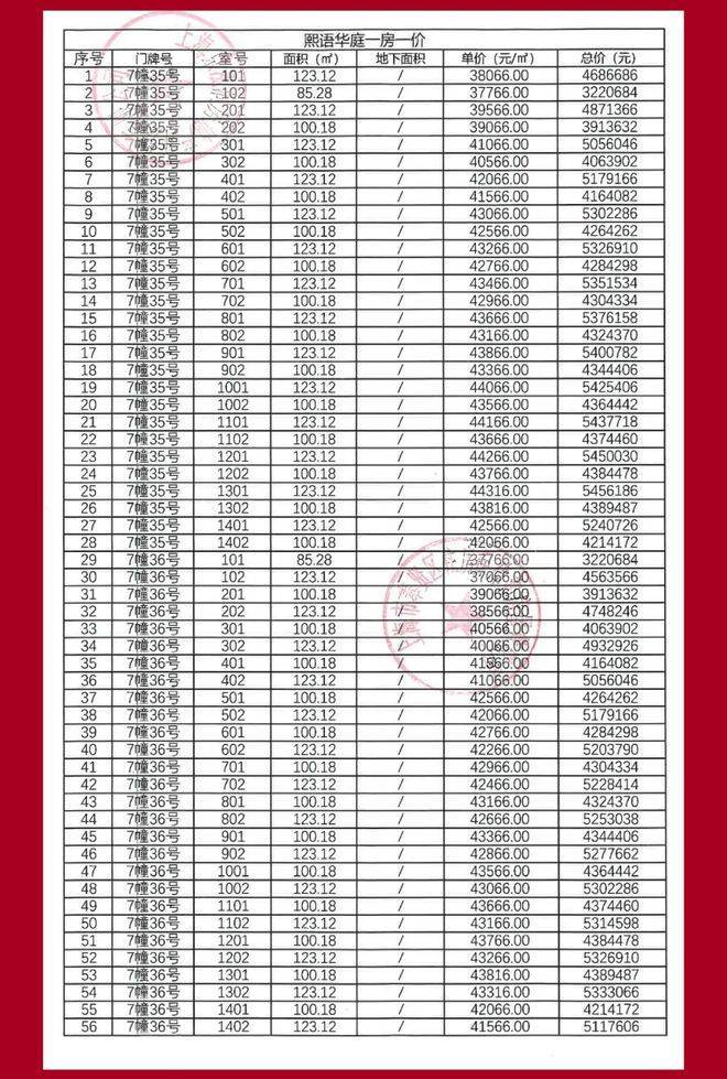 项目2期一房一价表▼