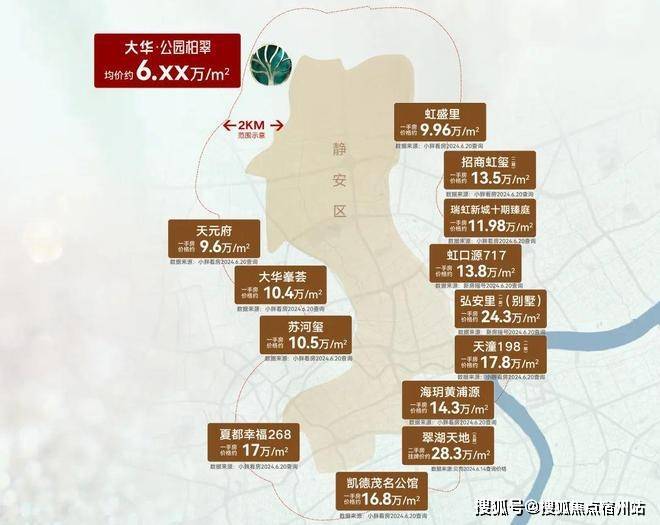 市场方面,周边近年开盘新房受此前限价影响,均价普遍在13万–14万元/㎡之间。而品质较好的滨水次新房挂牌价更高,如苏河湾中心润府约17.5万元/㎡,中粮天悦壹号约19.5万元/㎡,临苏州河的华侨城苏河湾均价更达23.5万元/㎡左右。