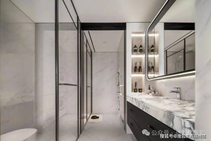 公卫 打造独特的 四分离系统, 实现独立洗漱台、卫生间、淋浴间、洗衣区互不打扰,将酒店化体验引入住宅。