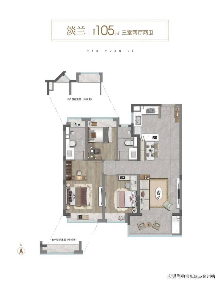 建面约105㎡三房户型▼