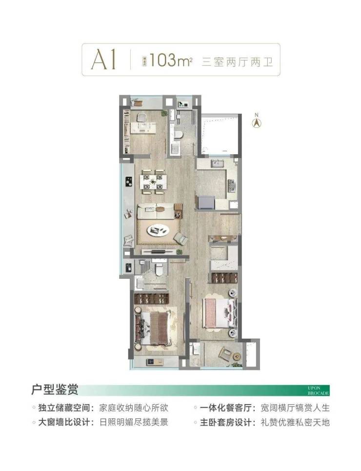 以一轴一带多境的格局,打造迎宾客厅、仪式水景、景观连廊、艺术水苑、森氧绿境、精装大堂六重归家礼序。