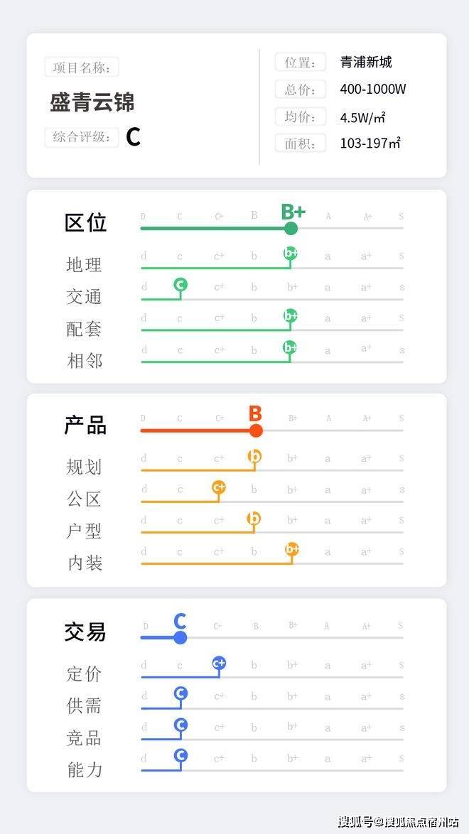 先看区位评级B+,其中地理b+,交通c,配套b+,相邻b+。