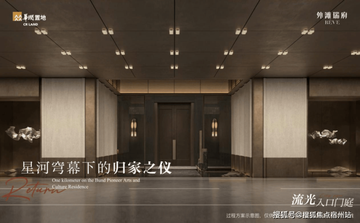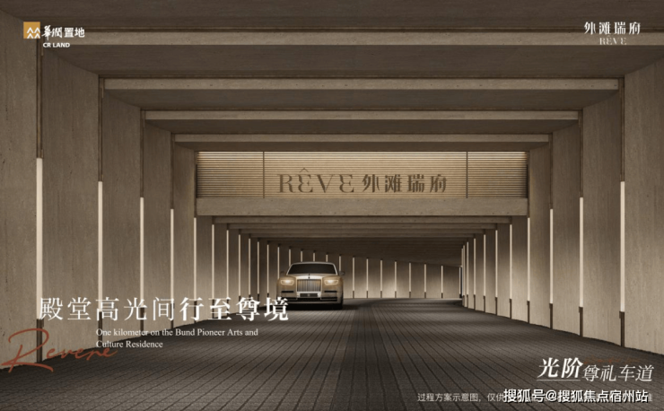 从哈尔滨路缓缓驶入,演绎四重殿堂星光级地下归家,首先映入眼帘的是「光阶尊礼车道」,随之而来的是「隽美天幕玄关」,慢行间车停于「超跑级T台车道」,仿佛置身于私人的尊驾秀场;最终抵达「流光入口门庭」,光影流转间,归心于瑞。