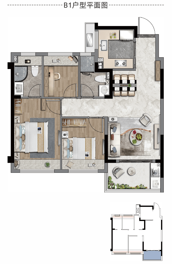 约85㎡三室两厅两卫