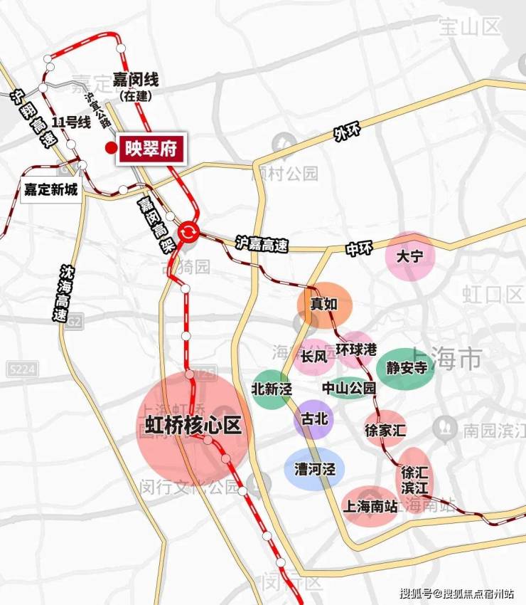 换句话说,整个嘉定新城中, 映翠府可以更方便、更快捷的行驶到嘉闵高架、沪嘉高速。