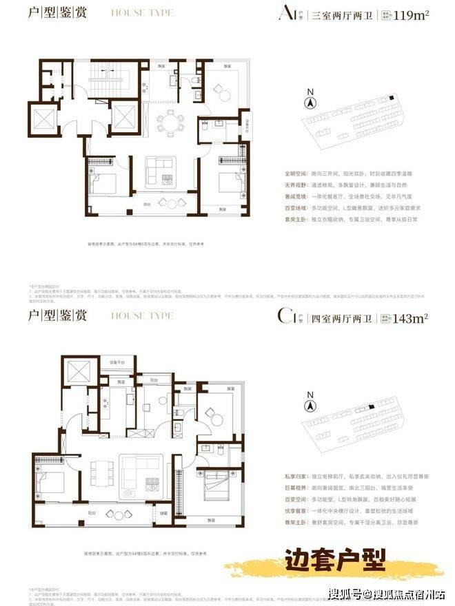 建面约 178㎡四室两厅三卫:终极改善藏品,全明通透、动静分区,四开间朝南,南向面宽约 16 米,双主卧套房设计,三阳台,空间奢阔,总价 900-1000 万。