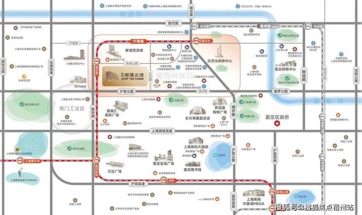 交通配套方面:项目距离轨道交通11号线嘉定西站直线400米左右,附近还有嘉定客运中心,交通便捷。另外,项目临近沪宜公路、距离沈海高速约1.5公里,上海绕城高速约3.5公里,自驾出行也十分便捷。