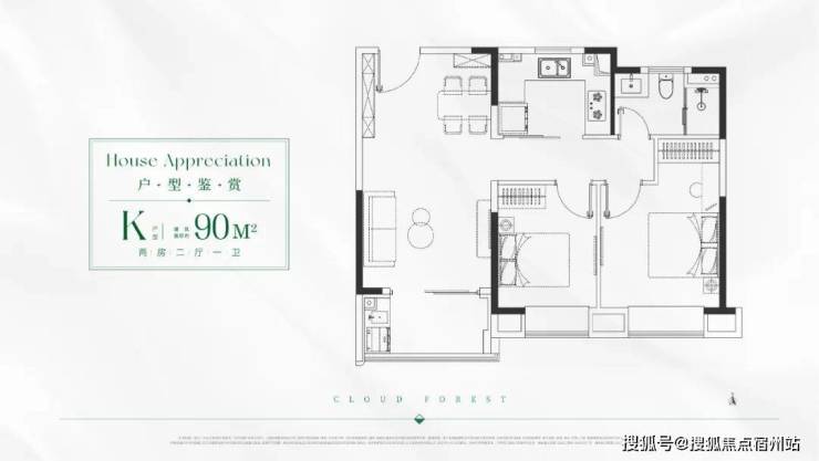 J/K户型 建面约90㎡2房
