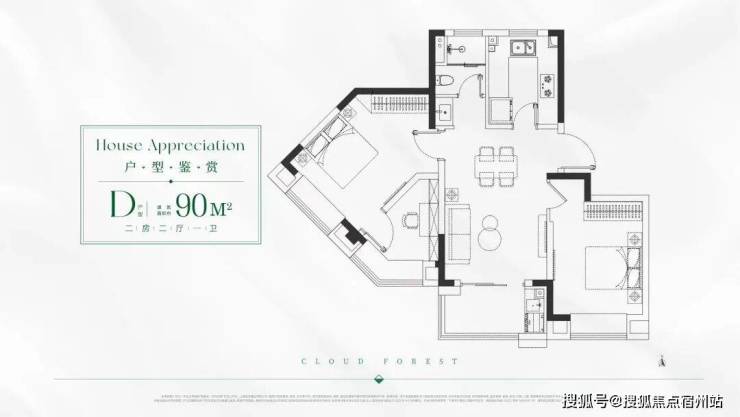 D户型 建面约90㎡2房