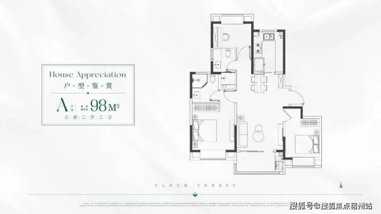 A户型 建面约98㎡3房