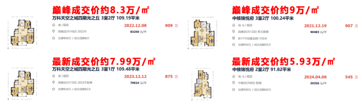 然而同区域地段更好的中核锦悦府,巅峰成交价超过9万/㎡,如今最新数据中有一套中楼层房源5.9万/㎡成交,对比初始约6万/㎡新房均价,甚至已经“破发”!