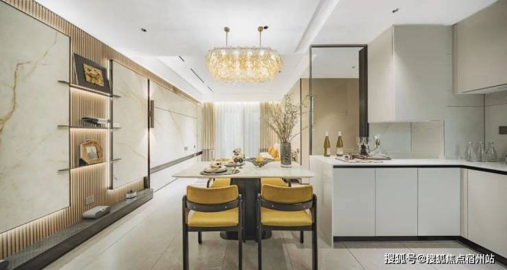 其次,LDBK一体化的客餐厅+U型厨房+能容纳4人餐桌的餐厅。