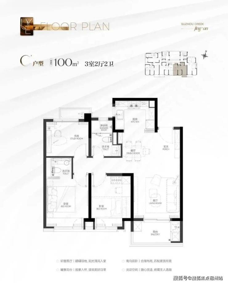 建面约100㎡3房户型