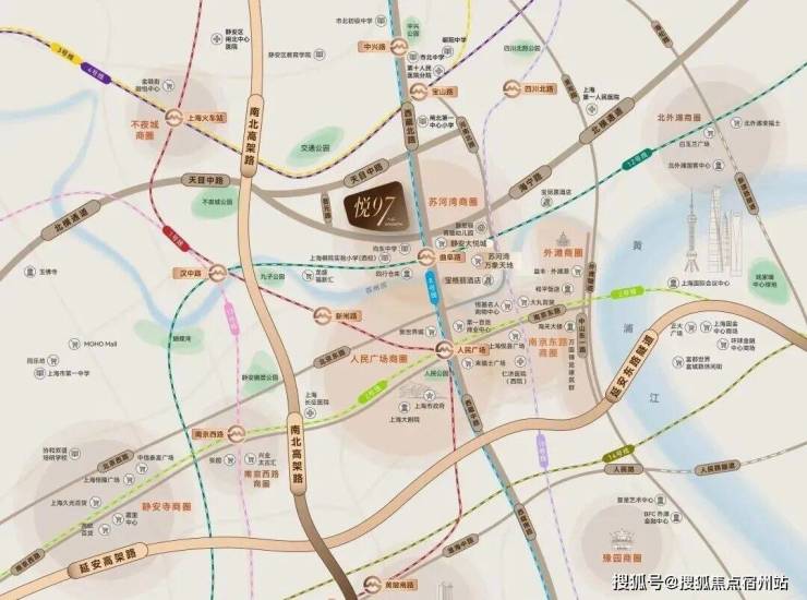 悦97坐拥苏河湾区域,约1.2km直达人民广场、约3km范围内覆盖全市顶层城市配套:外滩、南京西路、静安寺、新天地等,完全满足具有全球化视野的菁英人群对国际化生活方式的多样化需求。