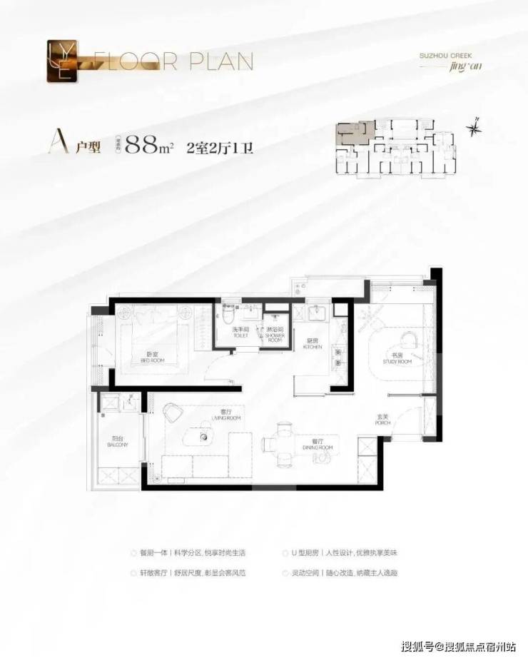 建面约88㎡2房户型