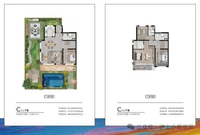 建面约150㎡3-4房 这个面积段的叠加空间更加富裕,空间打造上也更加灵动。主卧带观景阳台的设计,让四季景观尽收眼底。