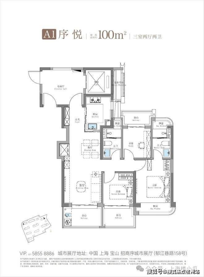 序悦-A1-建筑面积约100㎡三室两厅两卫