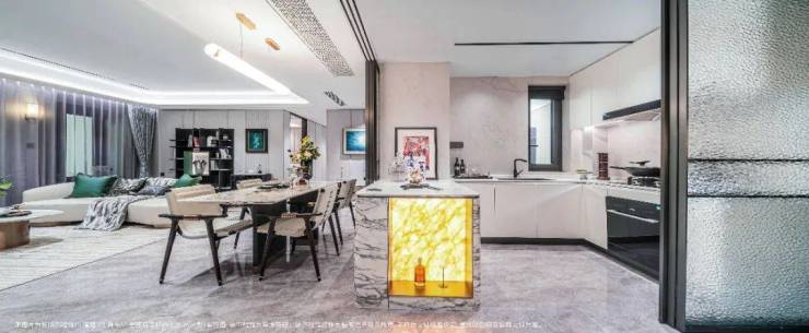 无论大小户型,厨房岛台都是标准配置,大面积岩板同样是交付标准;