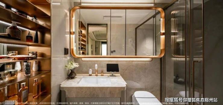 保利・外滩曜,这次还发现了女主人对于自我价值实现的需求,让女性从生活场景从“便捷需求”升级为“情感享受。”走进主卫,完全是为女主人量身打造的 “私人美容院”。这里有专属的 “女神三件套”:镜柜是高端定制款,内部带美妆冰箱,能放护肤品、化妆品。打开美容舱浴霸,温暖的红光能舒缓身心,;美妆龙头流出的水,经过 VC 净化滤芯,洗脸时温和清洁还能提亮肤色。
