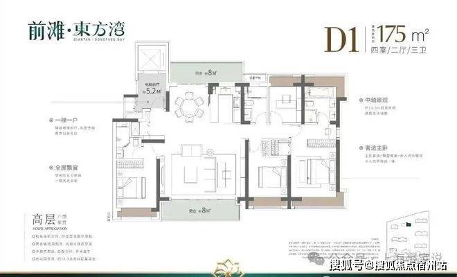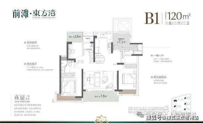 这3个户型三开间朝南、室内“朝南2飘窗+1阳台”、再加上“2卫”、“动静分离”的设计,不管是采光、视野、通风、私密性,还是实用性都十分出色。