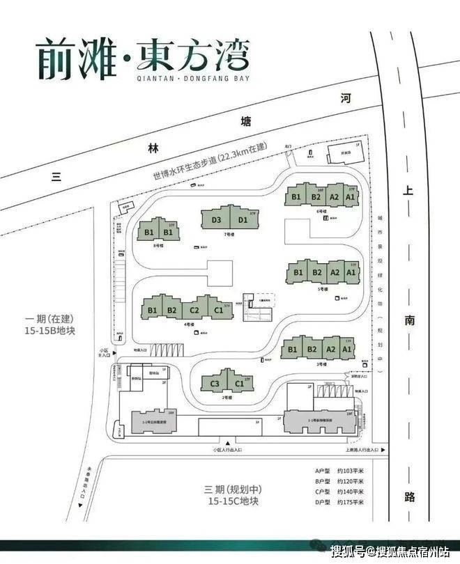一站直达前滩、地铁11号线三林站约350米,中外环轨交红盘、超30万方河滨大城永泰三里城二期定名「前滩·东方湾」,建面约103-175㎡3-4房及200平叠加复式,仅7.8万起哦!户型图如下:
