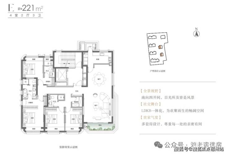 建面约221㎡4房户型真一梯一户的双玄关设计,打造独立尊崇的入户体验。