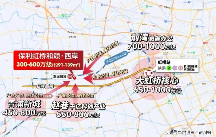 2站外的前湾已700万级,徐泾650万级,与项目同距离的赵巷也已550万级, 那保利虹桥和颂凭借300万级,叠加示范区线(在建)势能,无疑将成为大虹桥乃至全上海更为期待的价格洼地。