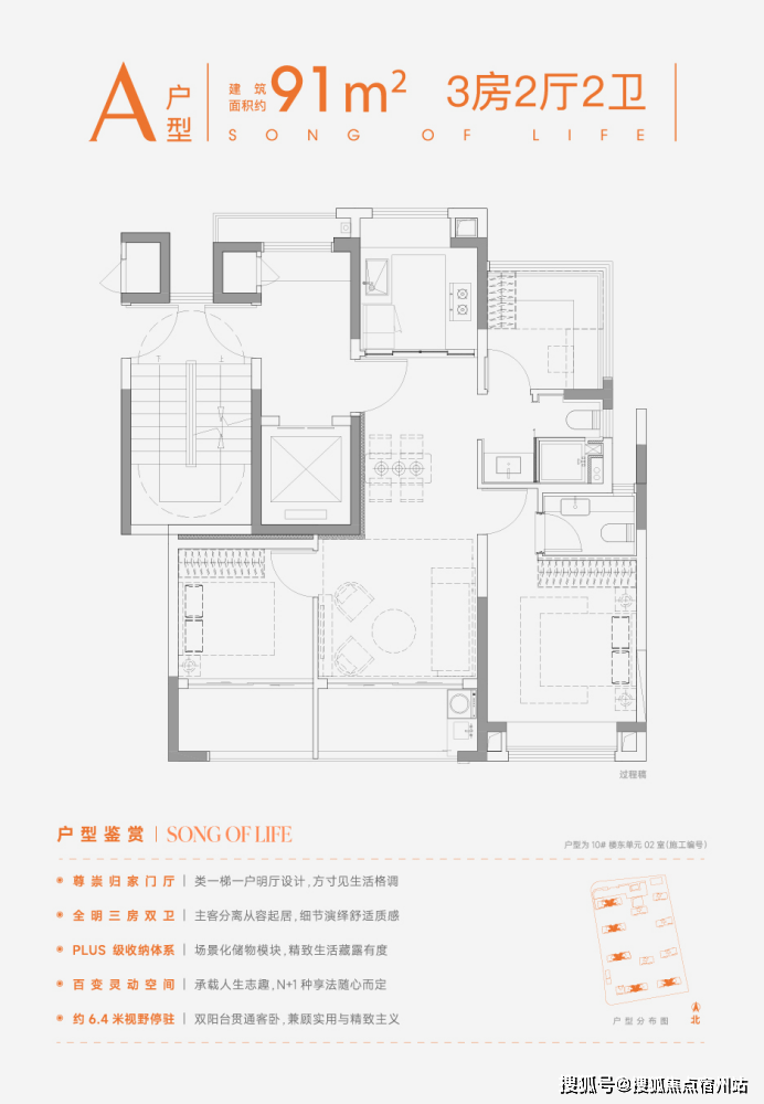 ②、建面约102㎡3/2/2,景观与实用平衡得恰到好处