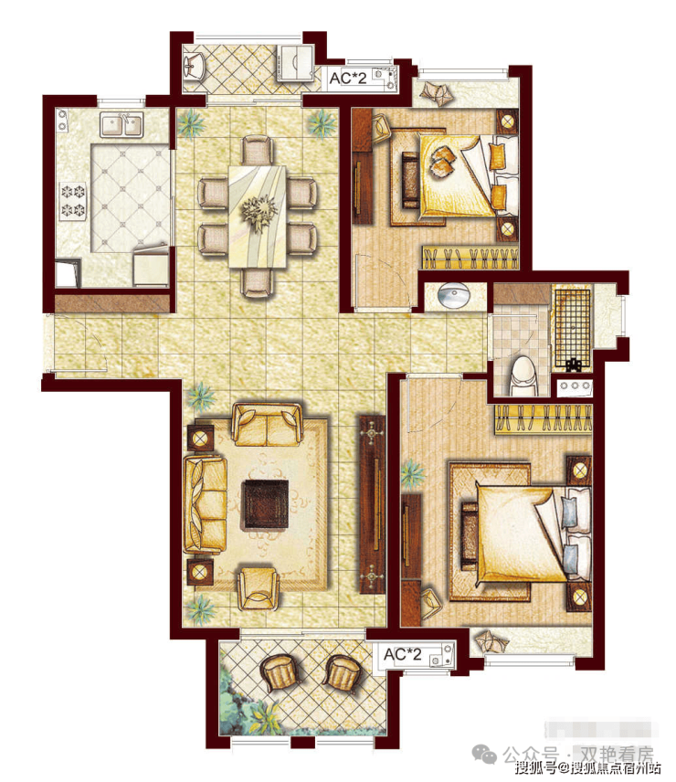 总体户型4房2厅的全套房设计还附享6个露台,主卧挑高设计使空间更为敞亮,优越的舒适性可满足三代同住需求。