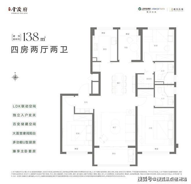 项目洋房全系无连廊设计,得房率高。如建面约138㎡户型,四叶草布局,南北通透,实得面积相当于一般高层住宅145㎡户型。
