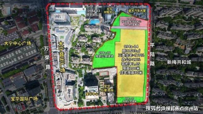 该地块西侧是宝华万豪酒店,再往西就是大宁音乐广场,地块东侧就是新梅共和城,南侧刚好就是大宁公园,整体城市界面可圈可点。