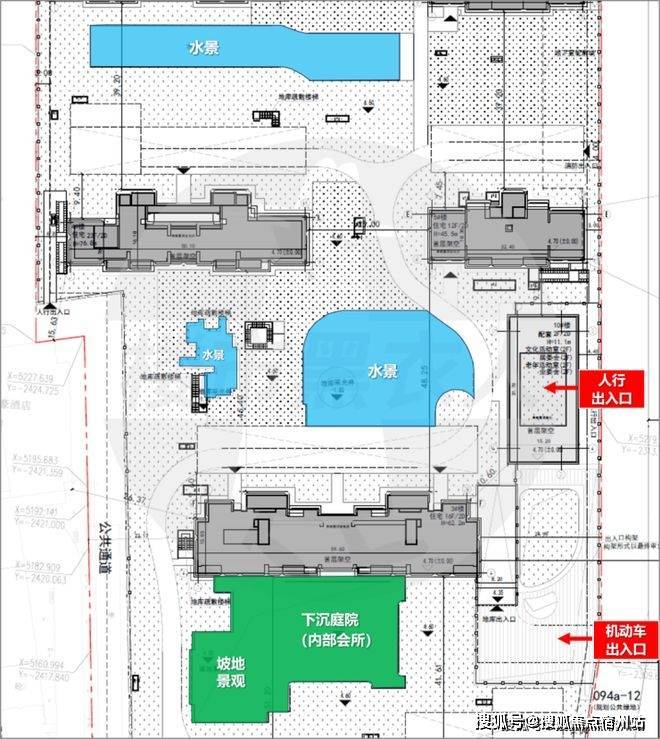 从规划图来看,社区内部广泛运用水景:共有2处大型集中水景+1处宅间水景,周边还有下沉庭院+坡地景观,大概率此处未来社区会所的位置。值得一提的是,项目的楼间距全部在35米以上,最大楼间距达到了约51.2米。