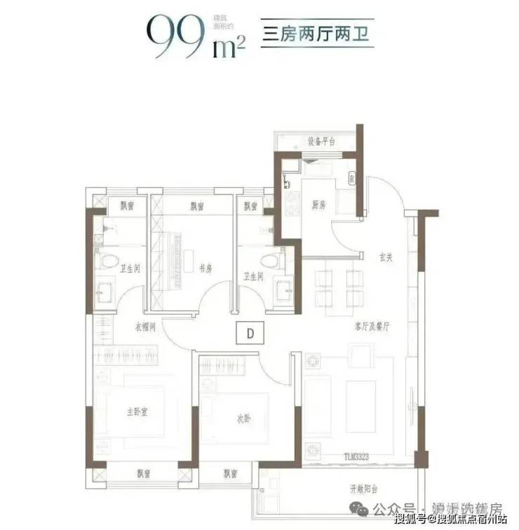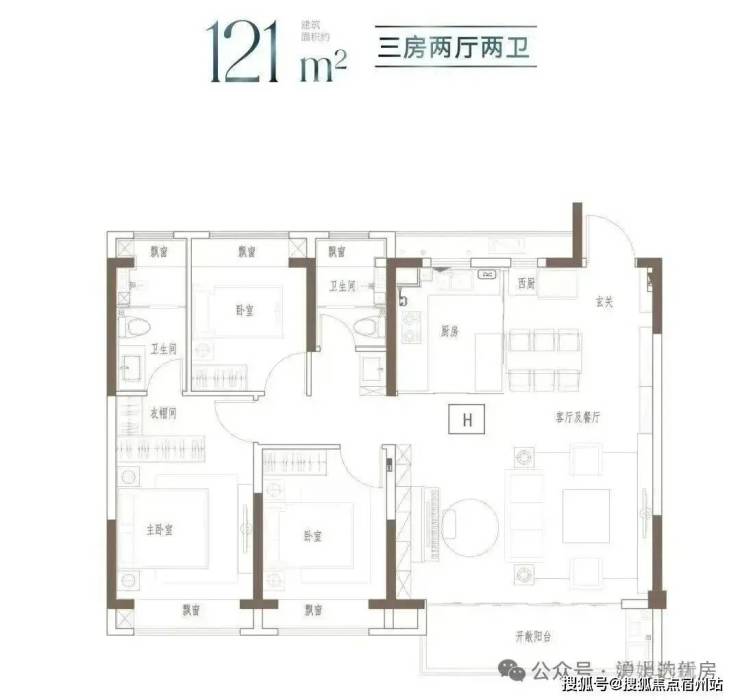 建面约91㎡-121㎡ 3房2厅2卫;这几个户型都是3房的设计,满足想一步到位的购房者。3开间朝南+客餐厅连通阳台+全卧室飘窗,以及套房式主卧设计+2卫,即使是三代同堂,也能让生活从容。
