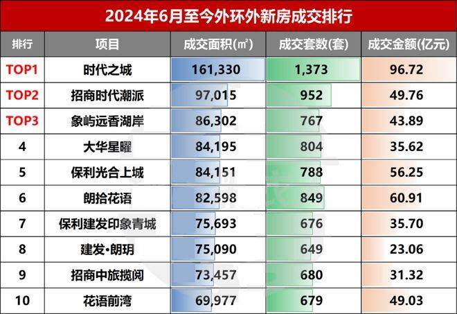 并且是外环外成交面积、成交套数、成交金额的三冠王。