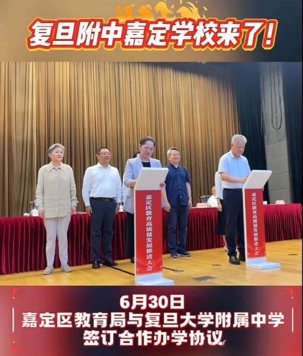 6月30日,嘉定区教育局与复旦附中签订合作办学协议,双方将在南翔镇合作举办复旦附中嘉定学校。