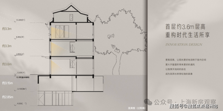 首层约3.6米层高,全面屏落地窗,生活背景无限