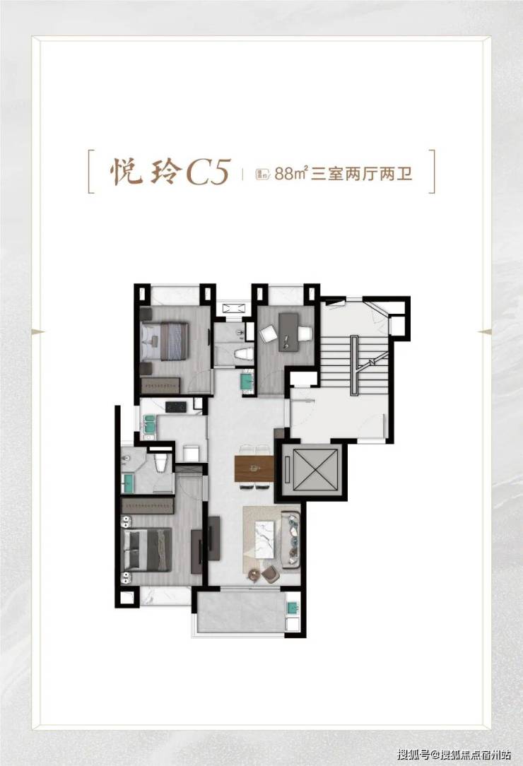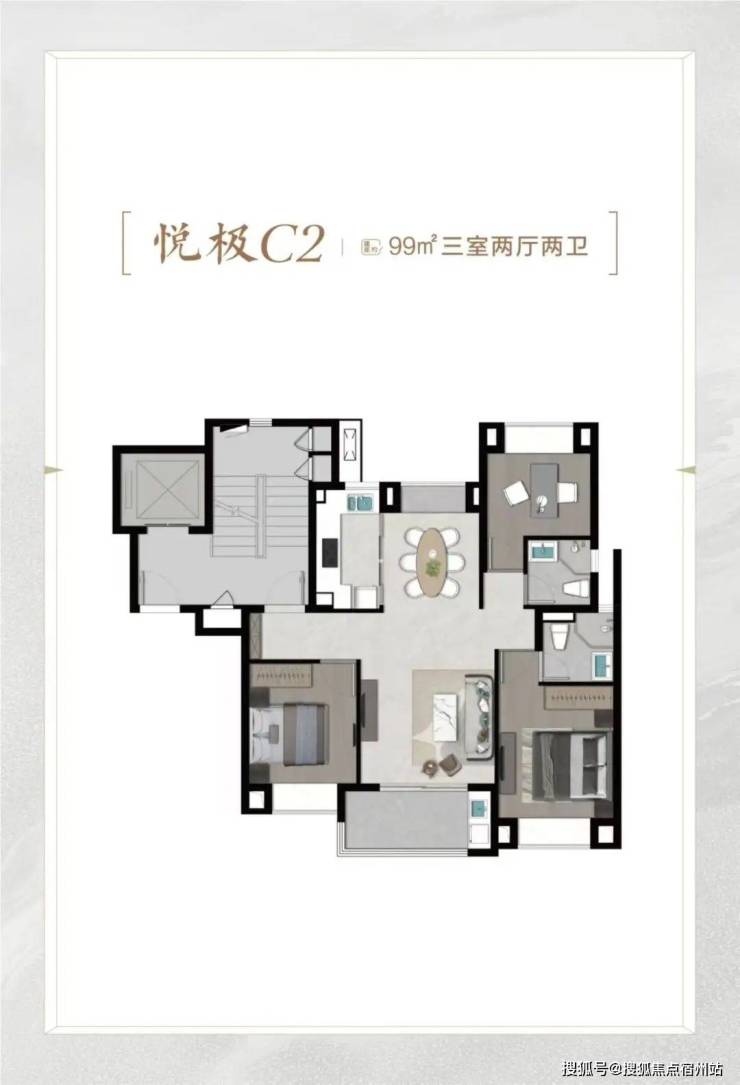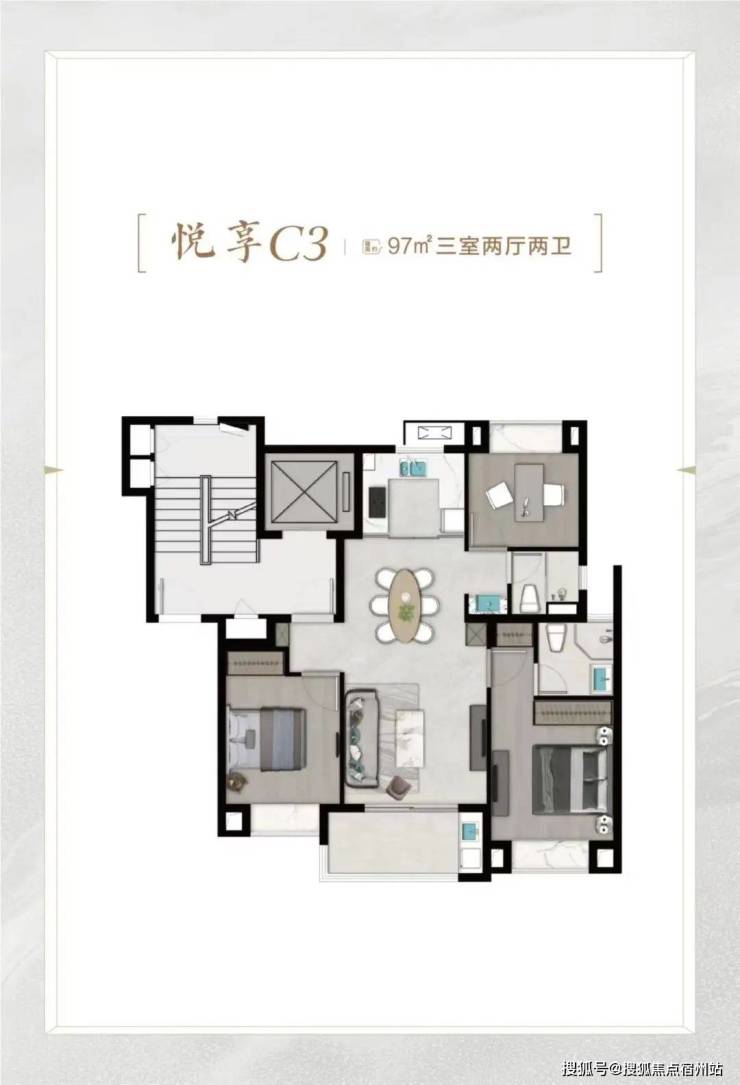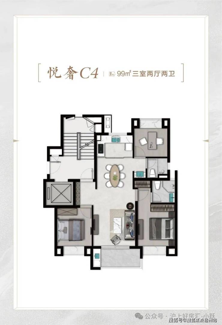 再比如 C6悦尊户型 , 建面约96㎡3房2厅2卫 ,比C4悦奢户型少3㎡,总价也适当降低。 C4户型该有的优点,也全都有,比如: ☑️☑️恒文璞悦江南售楼处电话:400-8377-020☑️☑️
