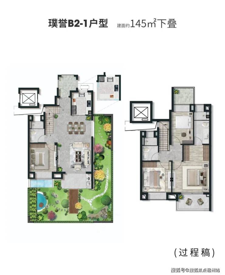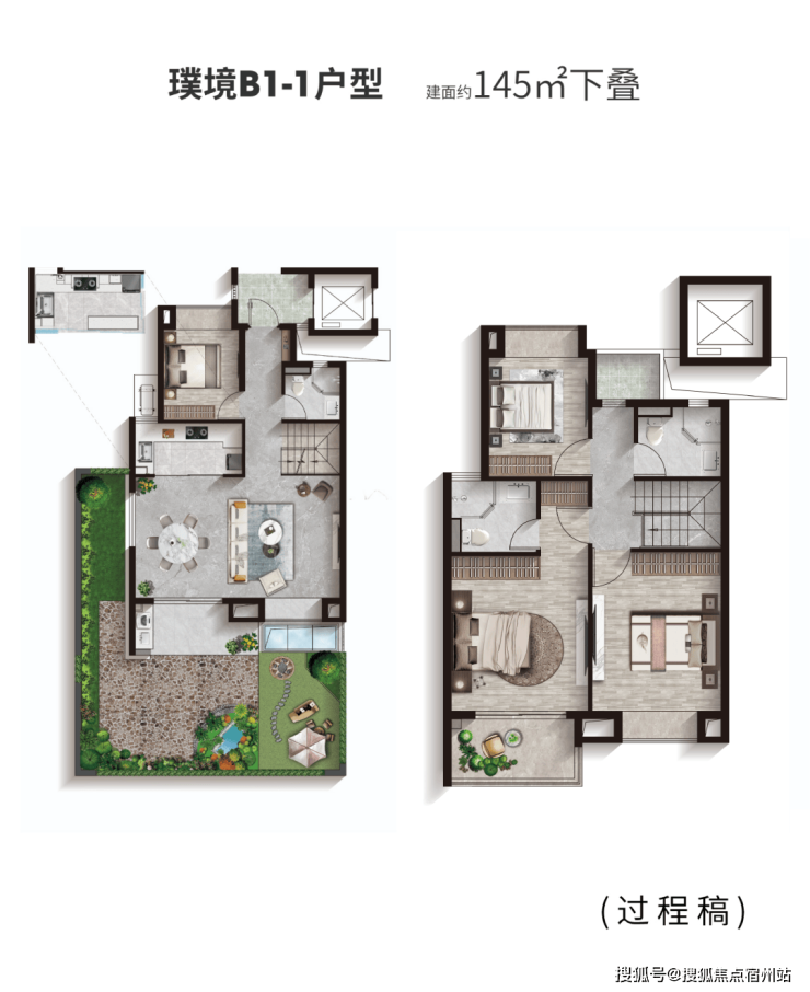 1、建面约123-145 m²叠墅