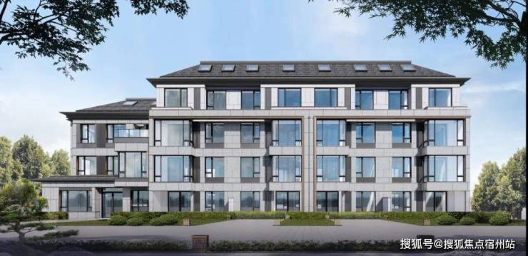 项目打造 新中式立面风格 , 别墅1-3层、洋房1-2层 采用来自 巴西的维多利亚白天然石材干挂 ,营造高级、大气的建筑气质。